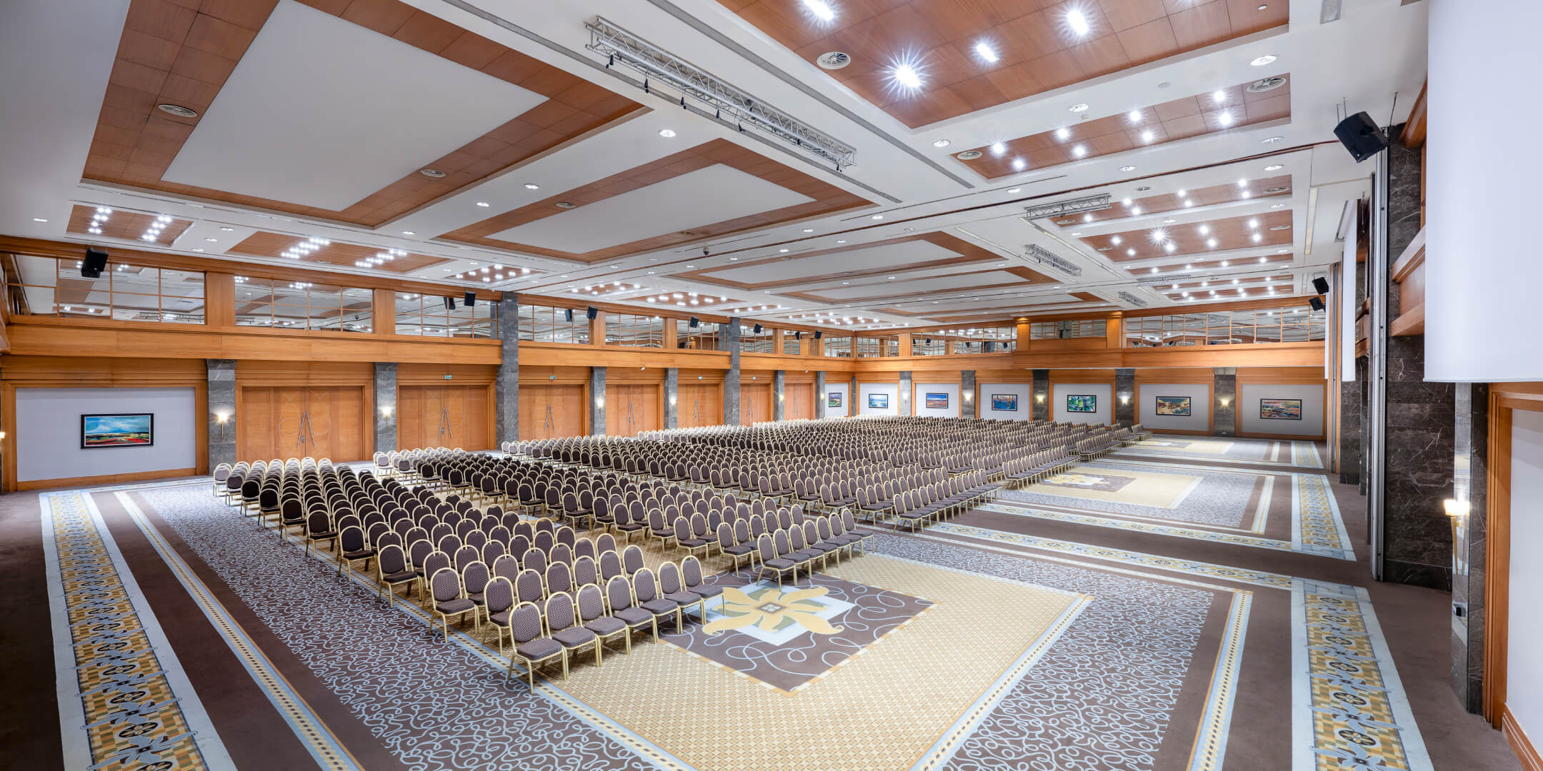 The high-tech Istanbul Meeting Hall offers a versatile congress area that has four 6x4.5 meter roller blind screens, a 4000 ANSI lumen beamer, a 350W sound system, and three cameras. The innovative light and sound system is designed to add a professional atmosphere to any event. Istanbul Conference Hall boosts efficiency and productivity by dividing into three separate halls to host multiple events. You can use these halls individually or combine them and host your guests in one larger hall.